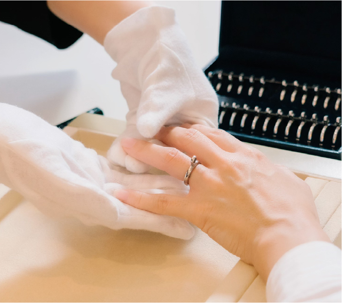 おふたりの大切な指輪を細心の注意のもとお預かりし、専門のコンシェルジュによるカウンセリングと、経験豊かなクラフトマンの診断によって、最適な修理のご提案をさせていただきます。