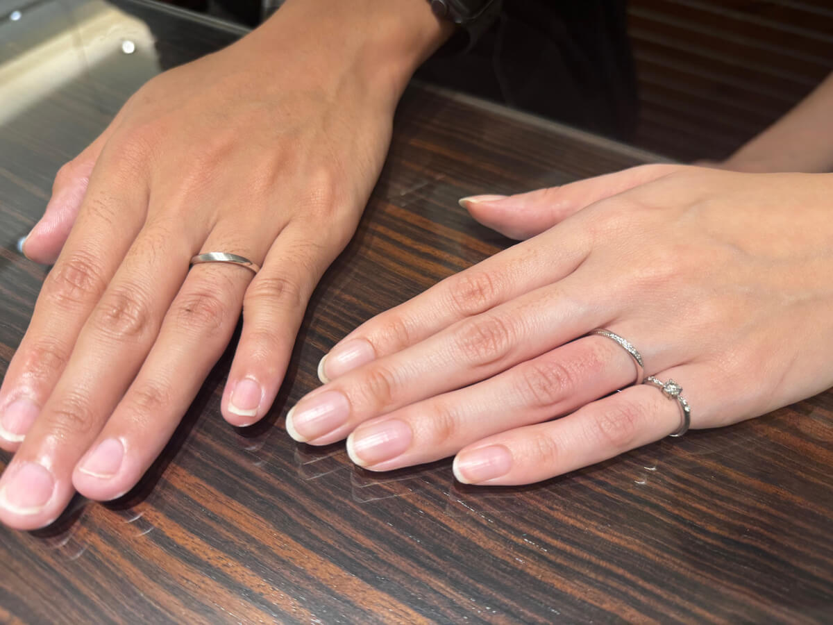 おふたりにとてもお似合いのペア感のある結婚指輪のデザインで、